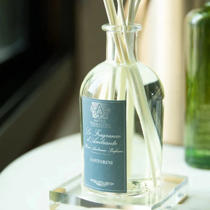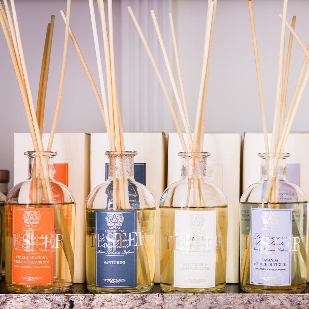 These signature product in the Antica Farmacista collection are a stable at Isabella. Utilizing apothecary inspired bottles filled with exquisite fragrance, the scent permeates the air via our signature reeds which are inserted into the bottle. The reeds absorb the fragrance and subtly distribute it throughout the air, providing lasting, beautiful scent. Customize the intensity by flipping the reeds — flip every day for more intense scent or once a week for more subtle fragrance.