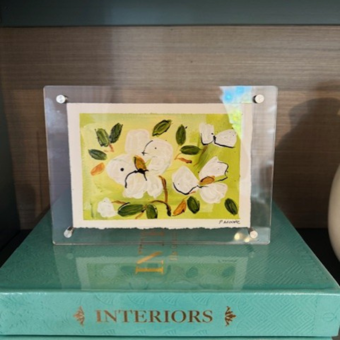 Patti Moore is a California native who spends most of her time escaping the chaos of daily life behind an easel. She views creating art as fun, relaxing and a way to slow down, focus and appreciate the beautiful details of the life that surrounds us. Never taking herself too seriously, Patti strives to keep work loose in style, allowing images to evolve using color and texture. She believes that art should evoke a response or emotion of some kind – usually calm in nature - and allow for individual interpretation.