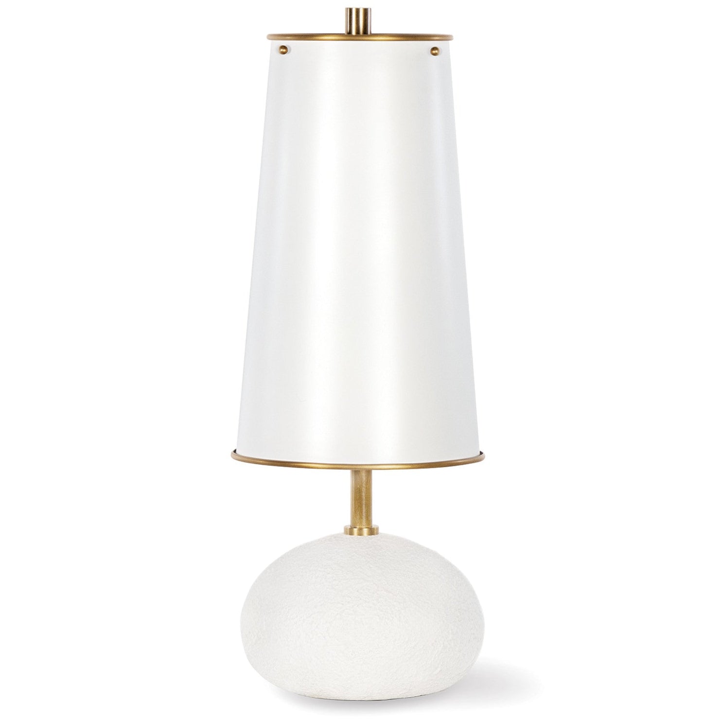 The sleek silhouette and textural interest of the Hattie Mini Lamp are a perfect addition to any modern traditional home. The timeless design of the painted white concrete orb base pairs well with the dramatic tapered cylinder shade. Style the Hattie in your office or on your bedside table for a soft and comforting glow.
