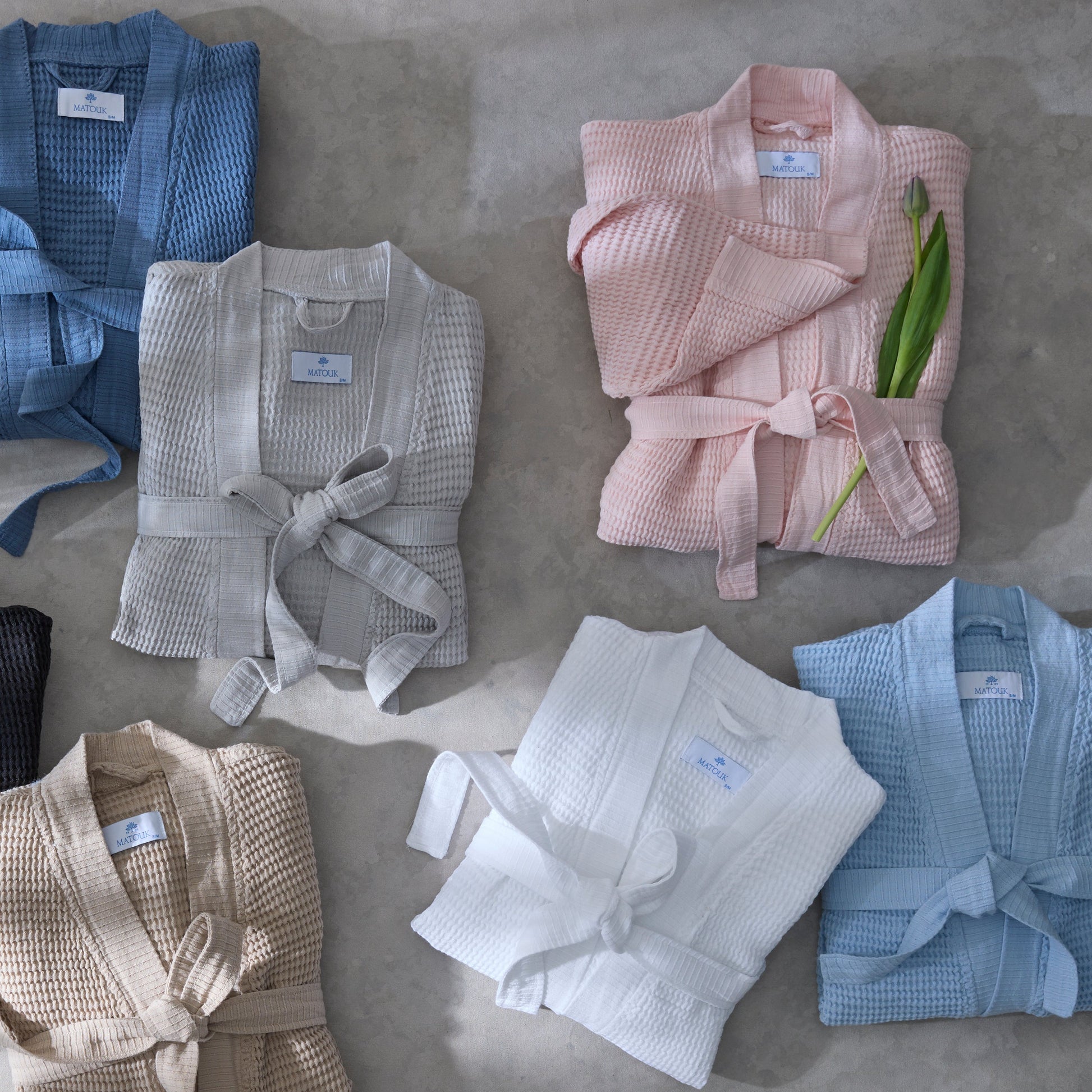 We've taken the Turkish waffle fabric woven for our Kiran bath towel and made a luxurious robe that's uniquely soft and supple. Relaxation begins the moment it touches your skin.
