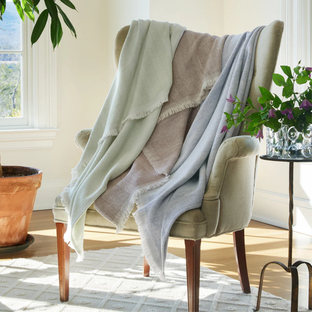 A classic herringbone weave in rich and cozy yarn dyed woven cotton. We added fringe to two sides for extra fun.
