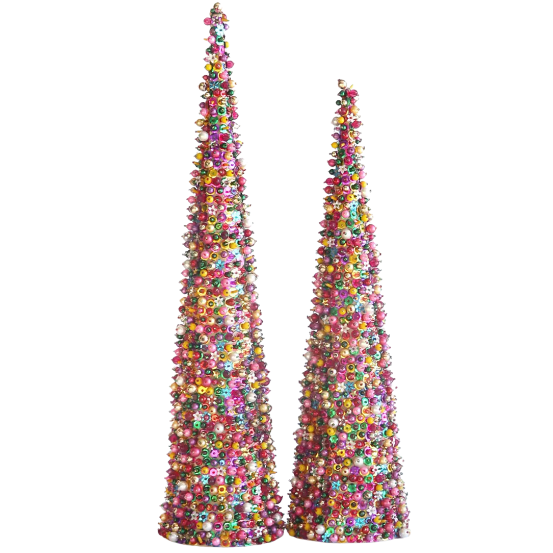 Add an unforgettable pop of festive flair to your décor with our Magpie Trees—towering cones of color, shine, and celebration. Covered in a shimmering collage of beads, baubles, and sequins, each tree dazzles like a holiday treasure trove gathered by a sparkle-loving magpie.