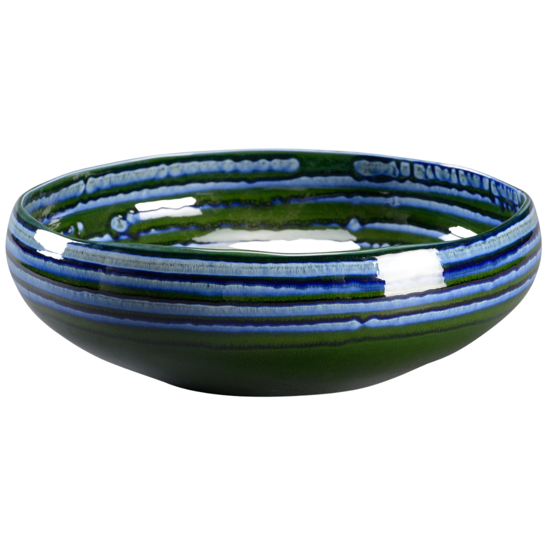 Stunning hand glazed ceramic bowl, swirls created by hand.