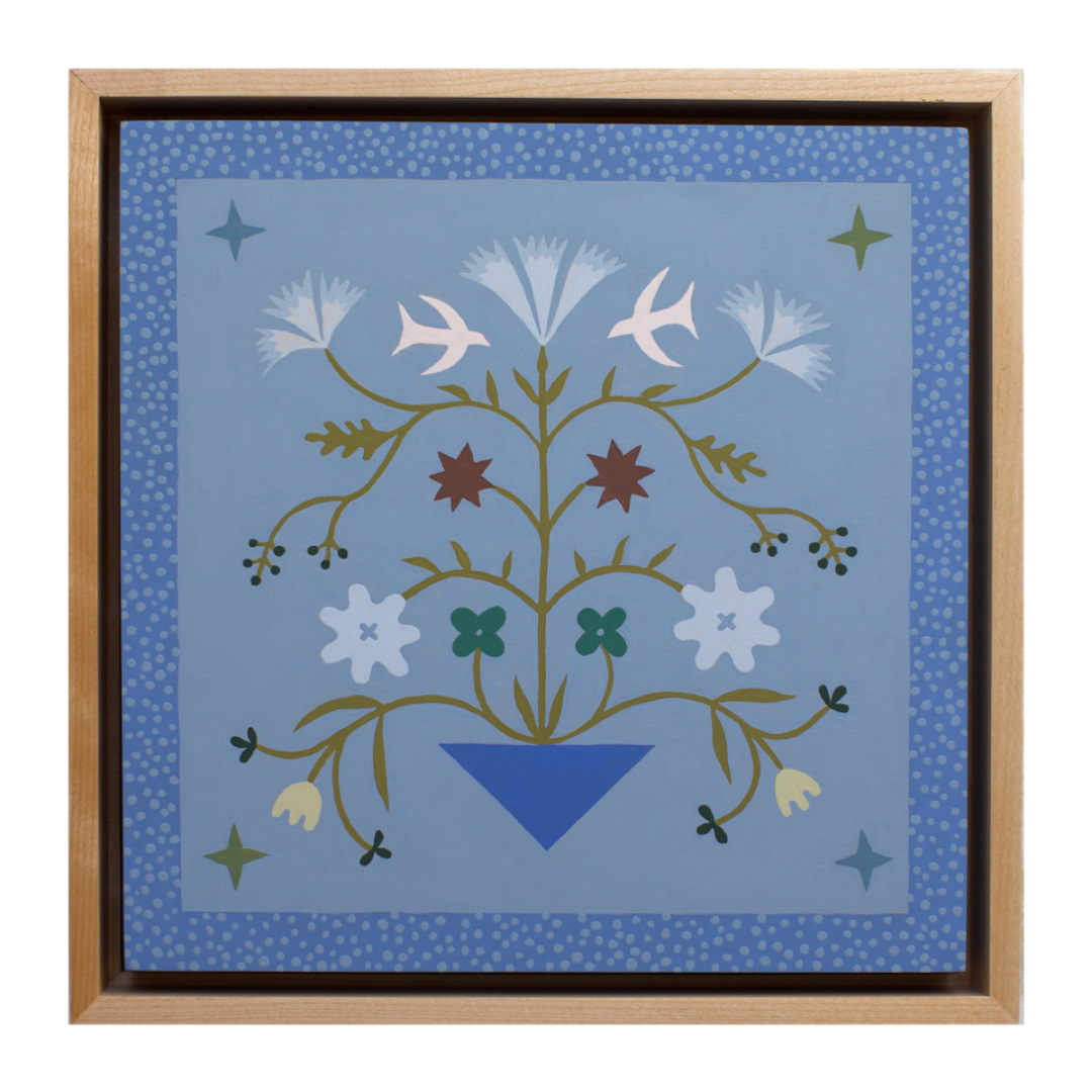 Lily Chambers is an artist & textile designer, deeply inspired by the places she has called home. Inspired by her time spent at her grandparent’s home on the outskirts of Charlotte, Lily began to create work that reflected the nostalgia and comfort those memories brought her. Her recent work explores traditional Southern folk art and quilting motifs and the preservation of textile designs through painting. She is passionate about capturing colors and creating work that brings others joy. Lily is a graduate of the Savannah College of Art and Design and is currently making & residing in Charlotte, North Carolina.