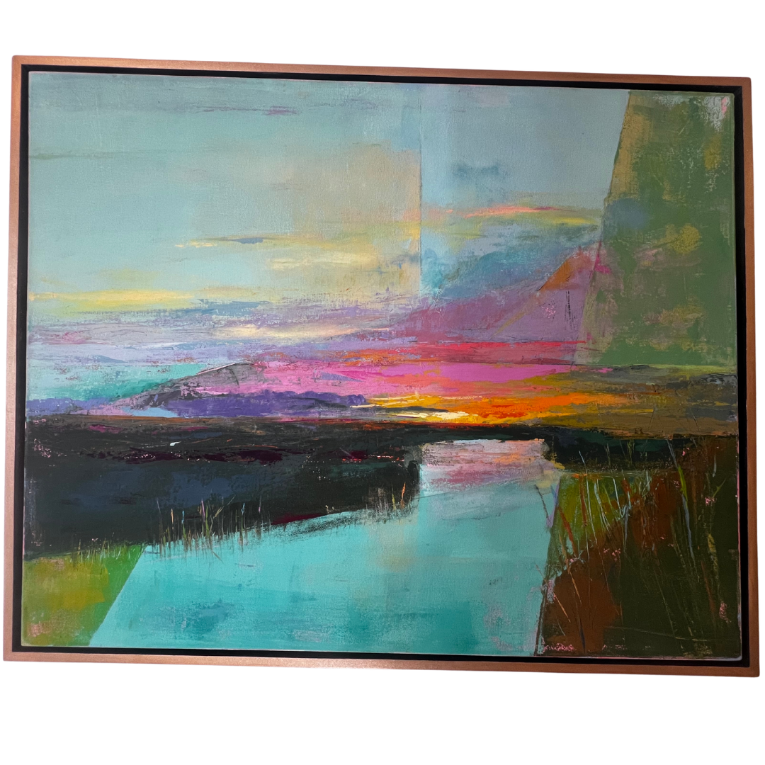 Oil and Cold Wax Framed in Bronze Shimmer Floater Frame