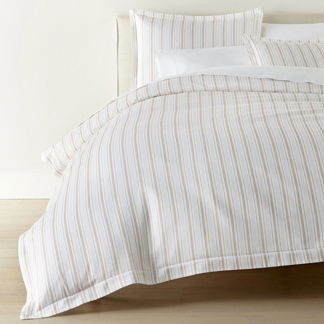 Transcending time and trend, the Shelby Duvet Set features a classic stripe design–created to feel both timeless and refined. Expertly crafted in Portugal from 100% cotton sateen for a silky-soft hand and elegant drape, our duvet sets complement a variety of bedding looks.