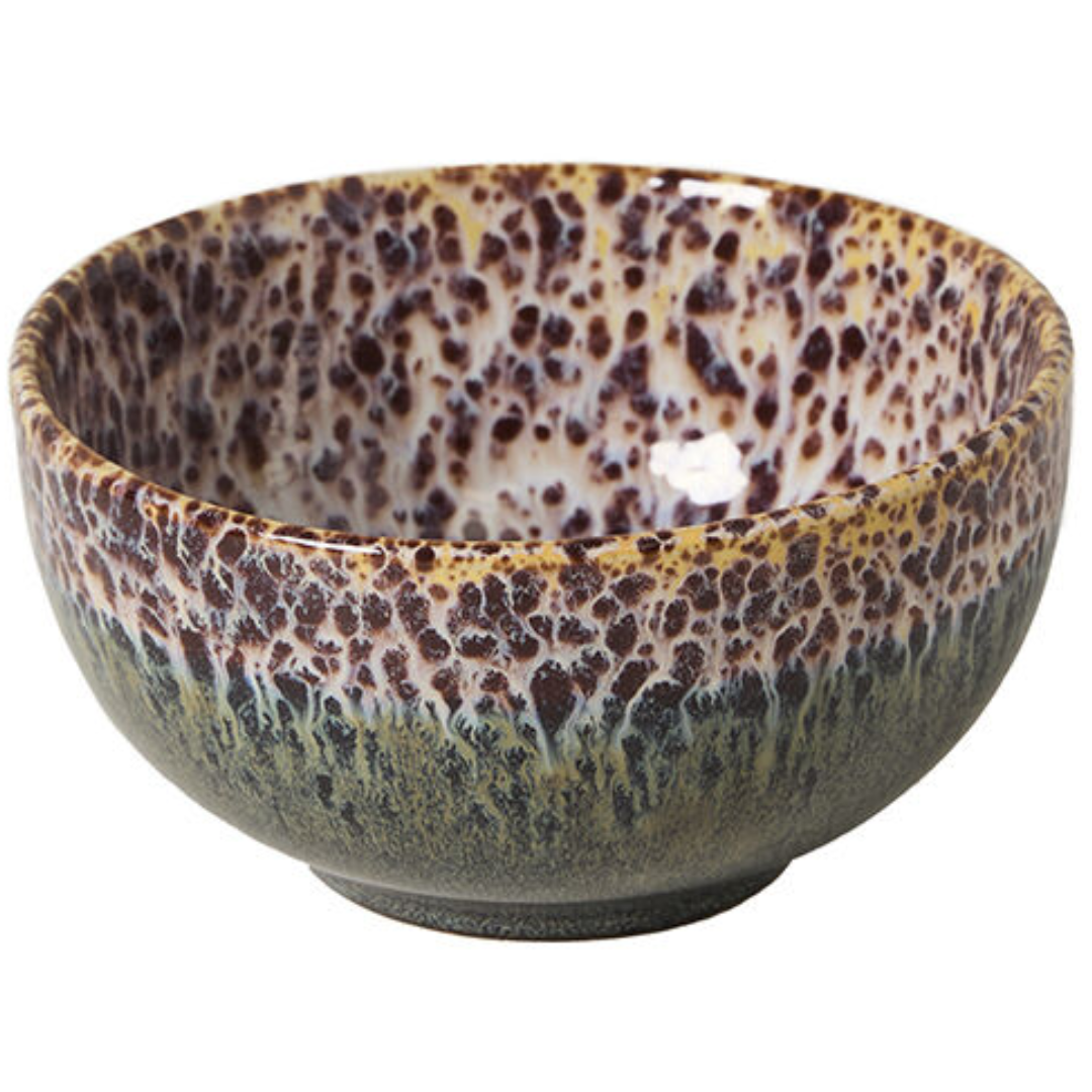 Display an artisanal piece in the kitchen & serve dishes in style with the stunning speckled stoneware Starling Bowl. This rounded, imperfectly shaped bowl features a smooth glossy finish with surface variation & a reactive glaze of flecked greyish green hues. This artful everyday tableware makes a beautiful statement, especially arranged on open shelving alongside the other Starling colorways & styles for intentional, layered home decor.
