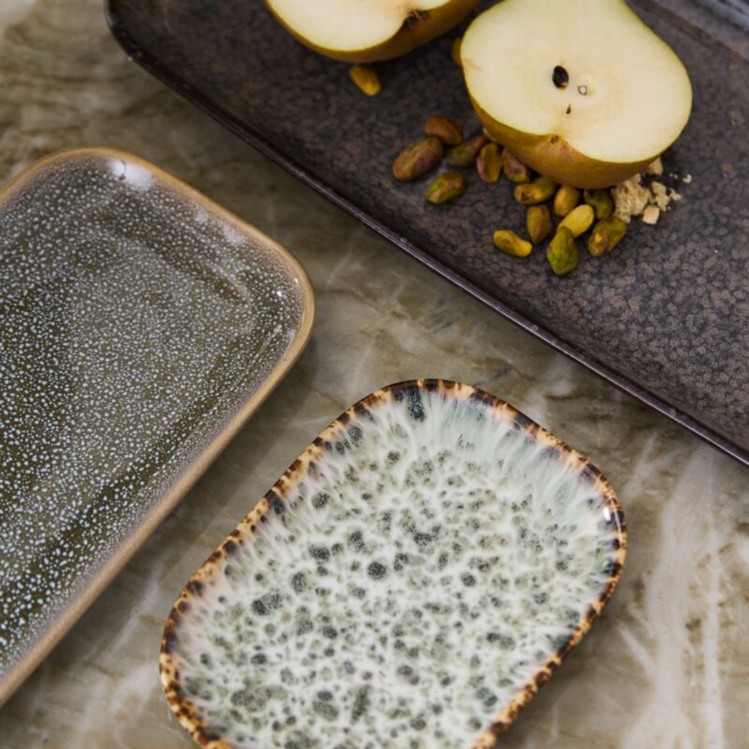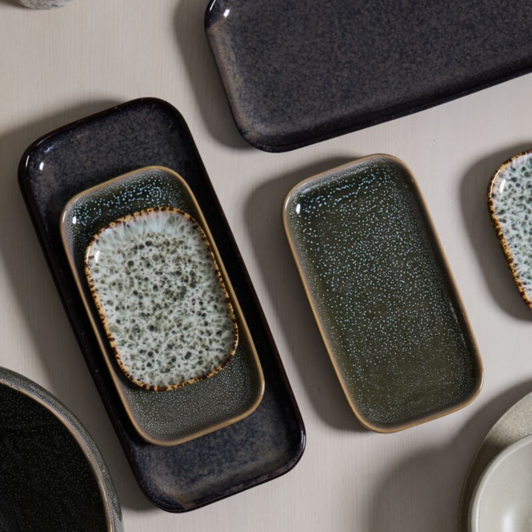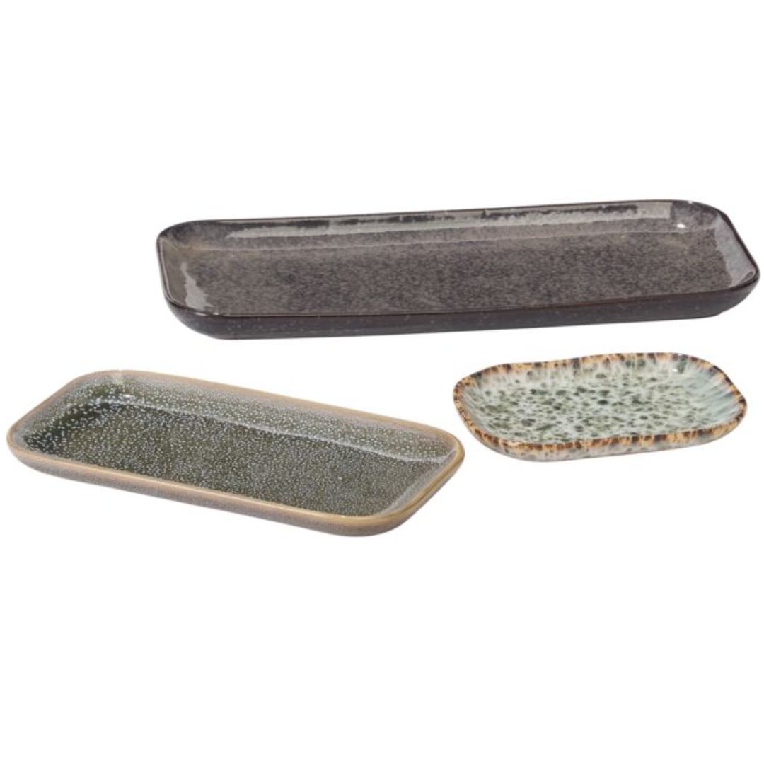 Display artisanal style anywhere in the home with the stunning collection of ceramic Starling Trays. These rounded rectangular dishes nest together perfectly & are small-scale but can be used to serve food & snacks. Featuring a smooth glossy finish & a different reactive glaze on each dish, these decorative trays are ideal for holding trinkets or styling in a powder room with soap or candles. Layer with the coordinating Starling & Freestone Collections for intentional home decor.
